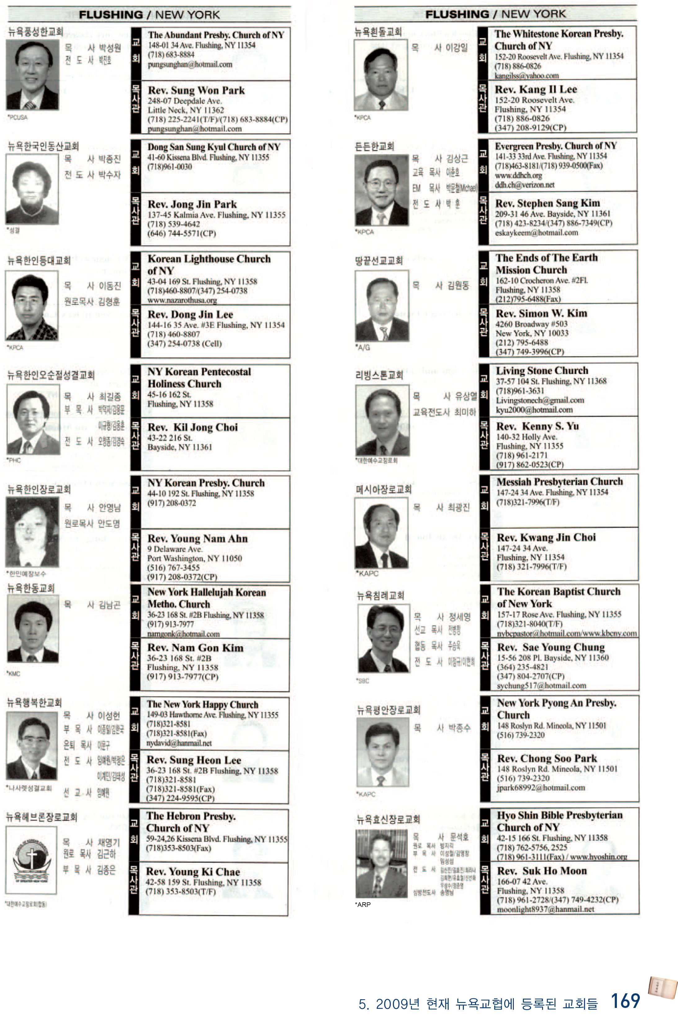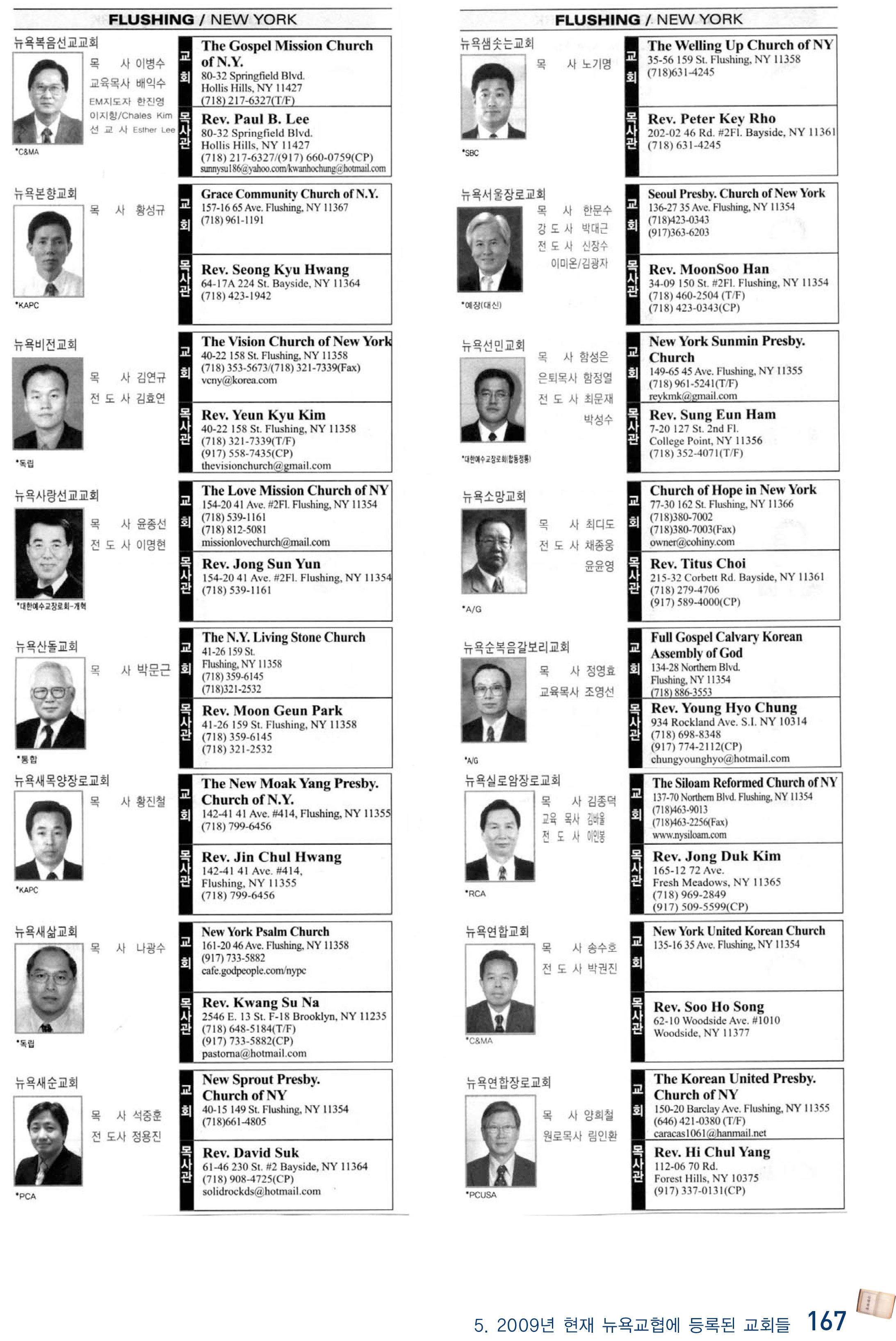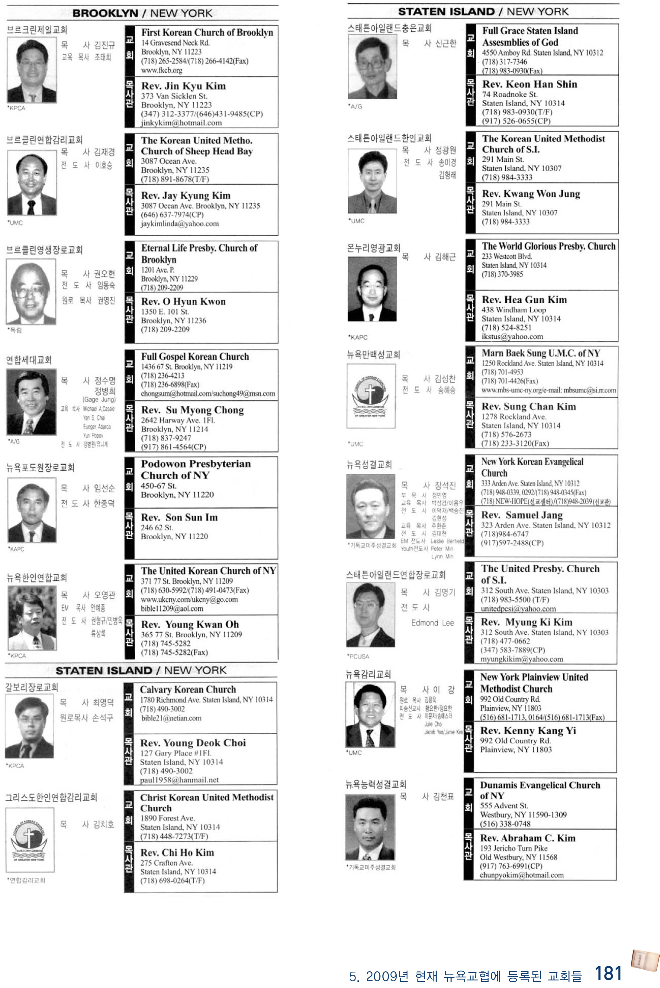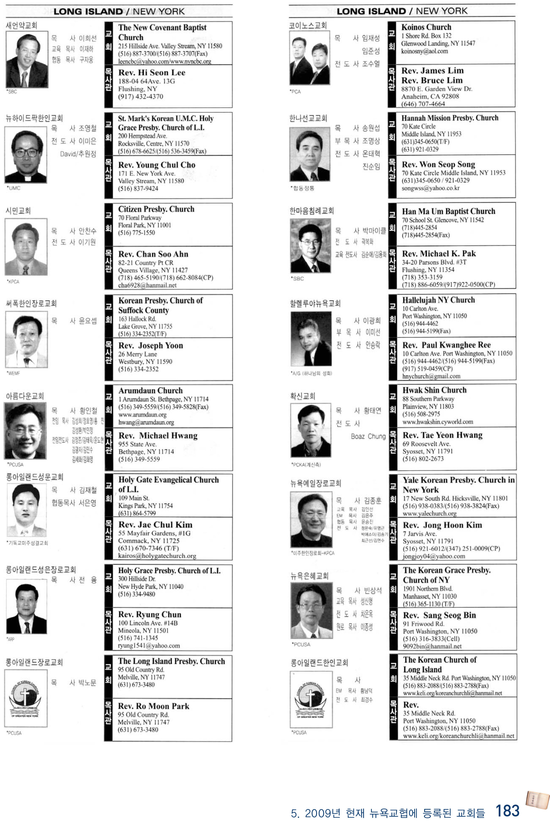 2009년 현재 뉴욕교협에 등록된 교회들