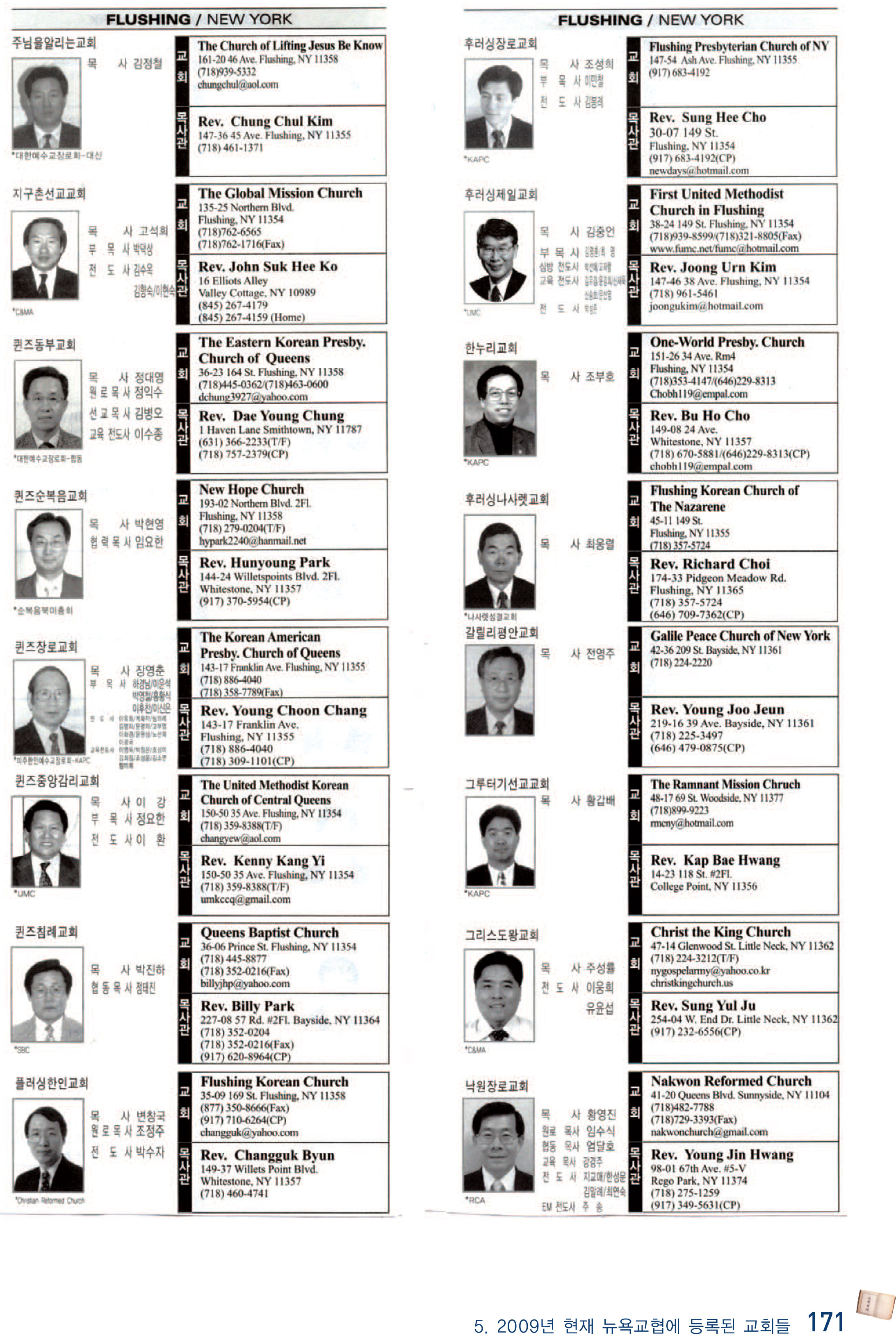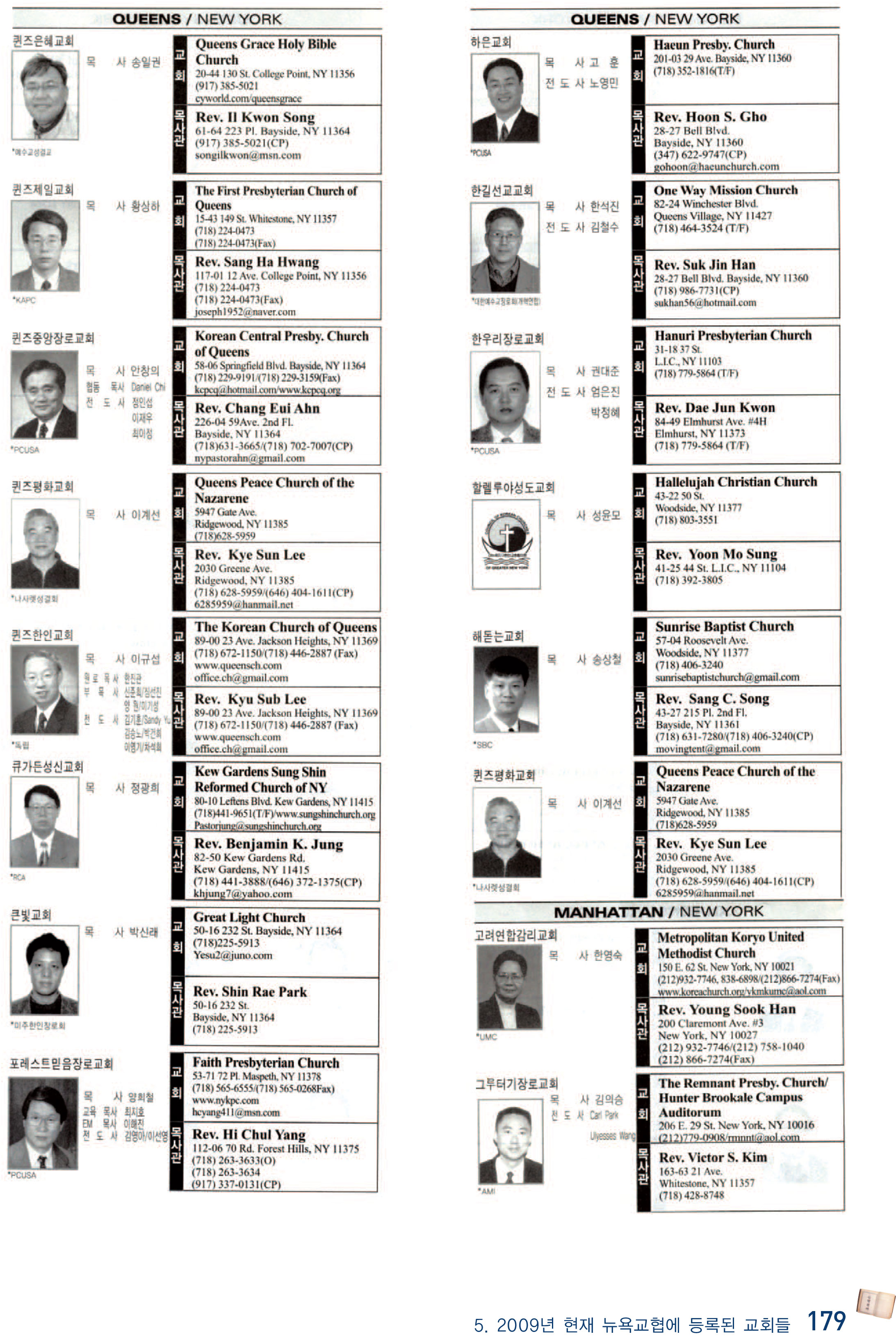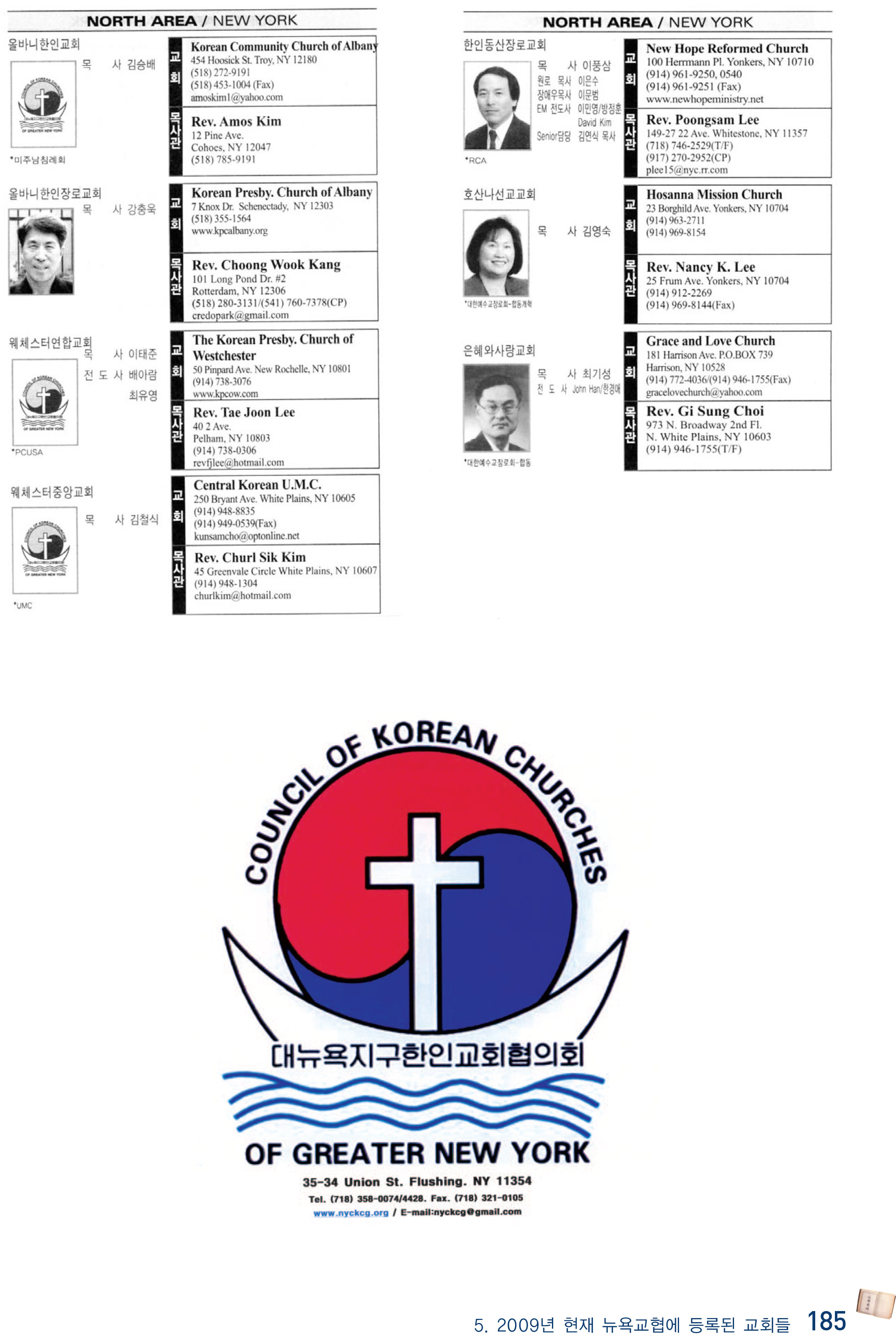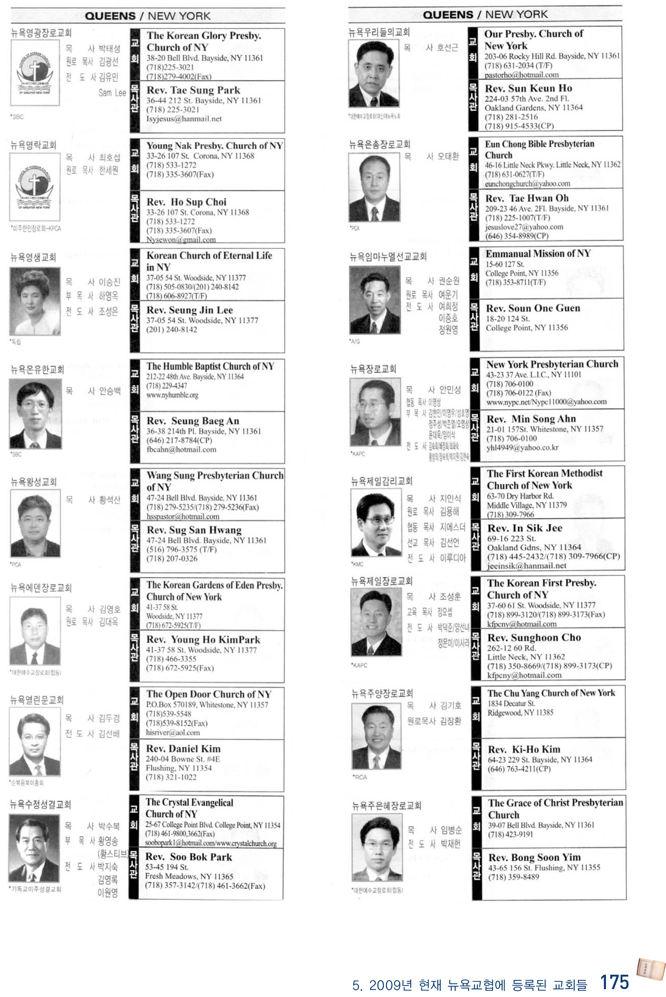 2009년 현재 뉴욕교협에 등록된 교회들