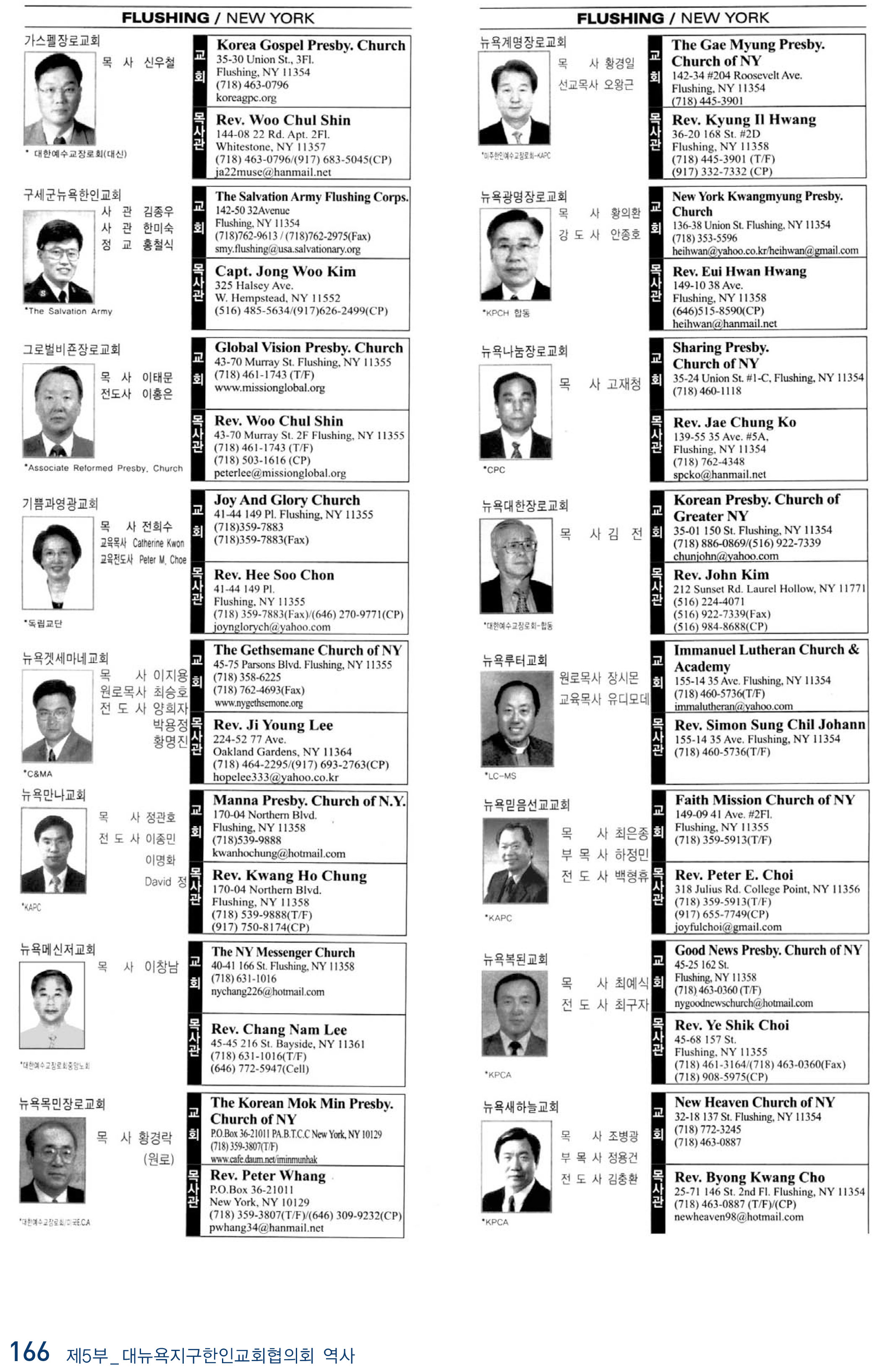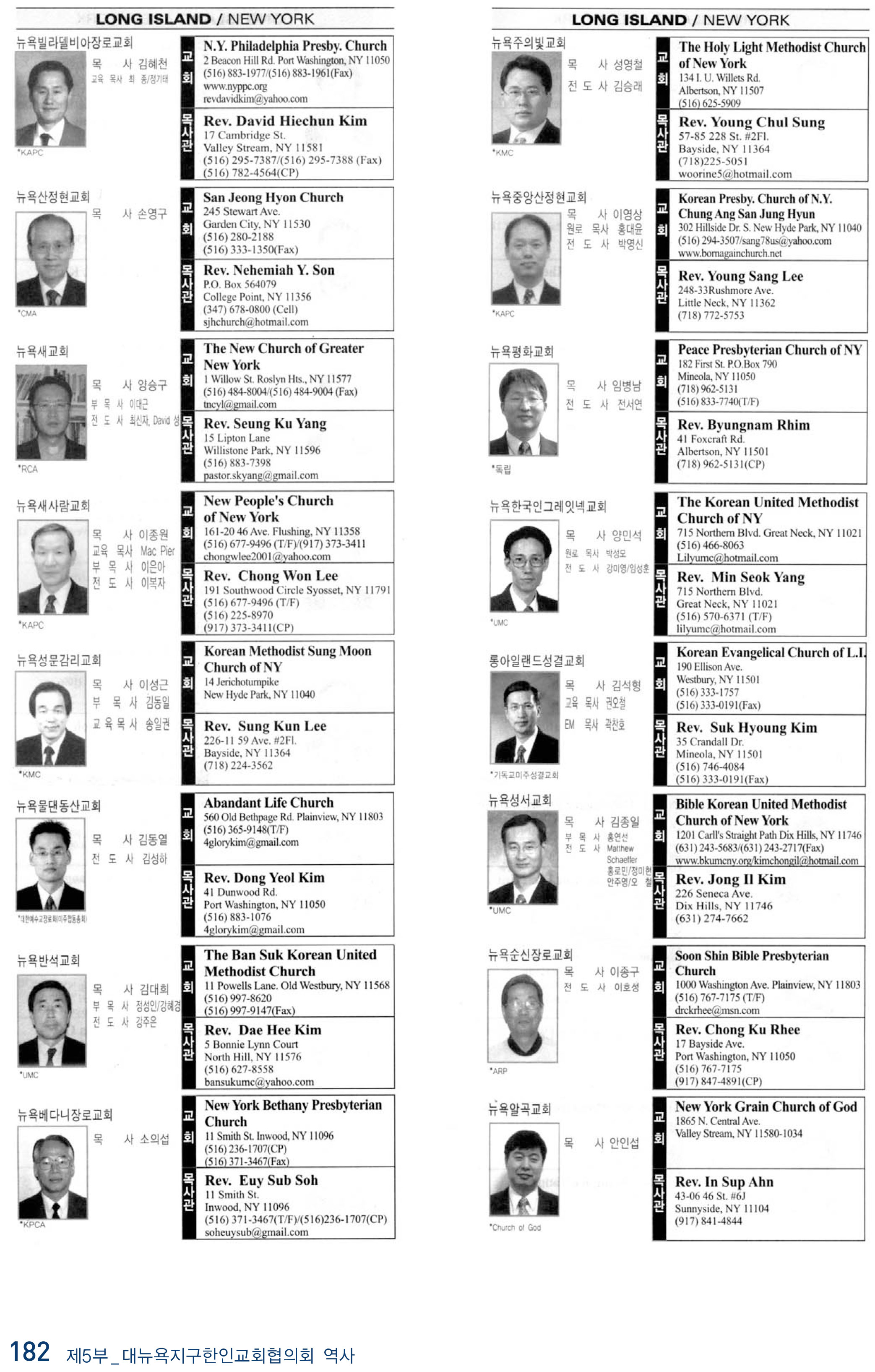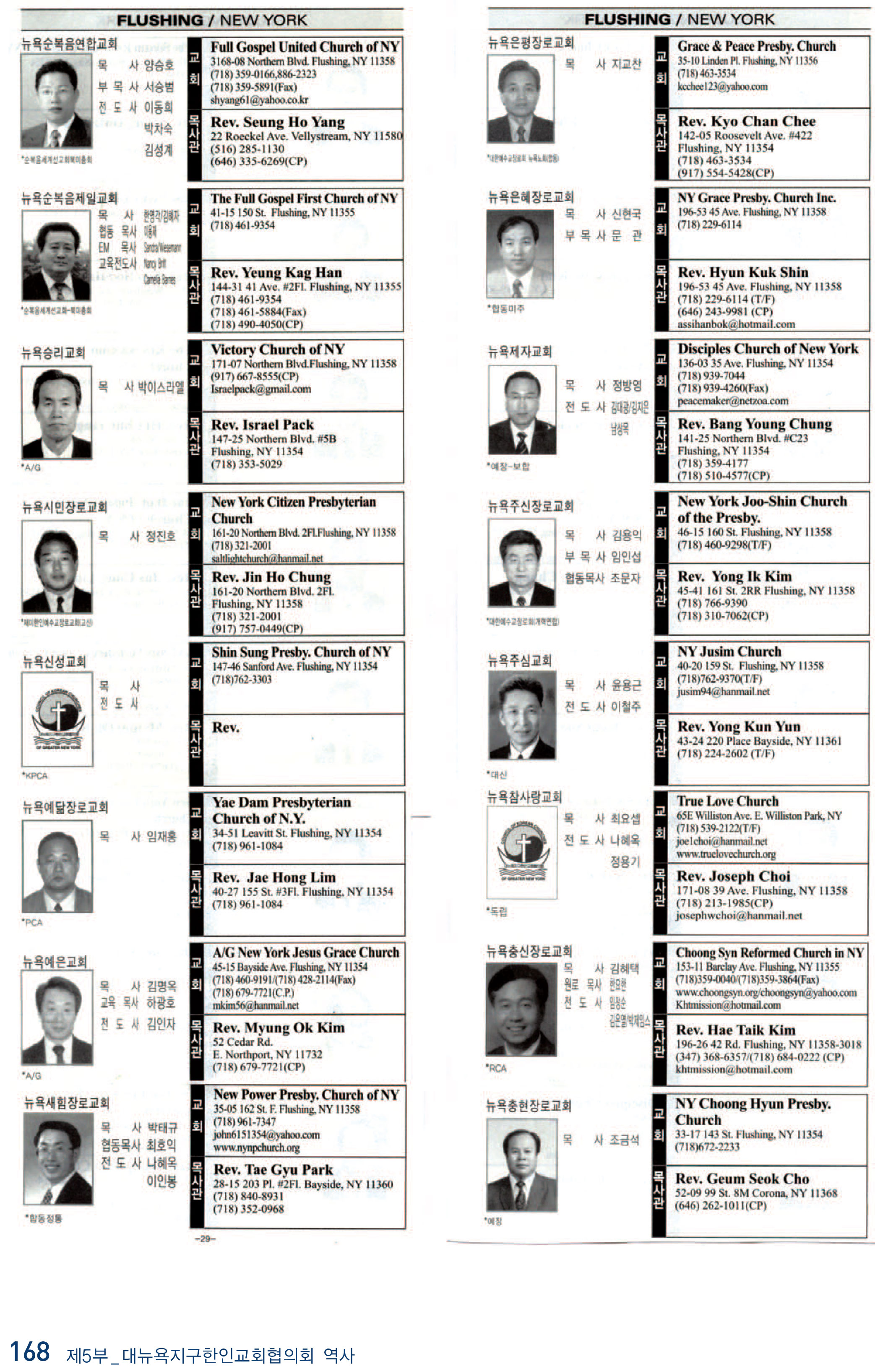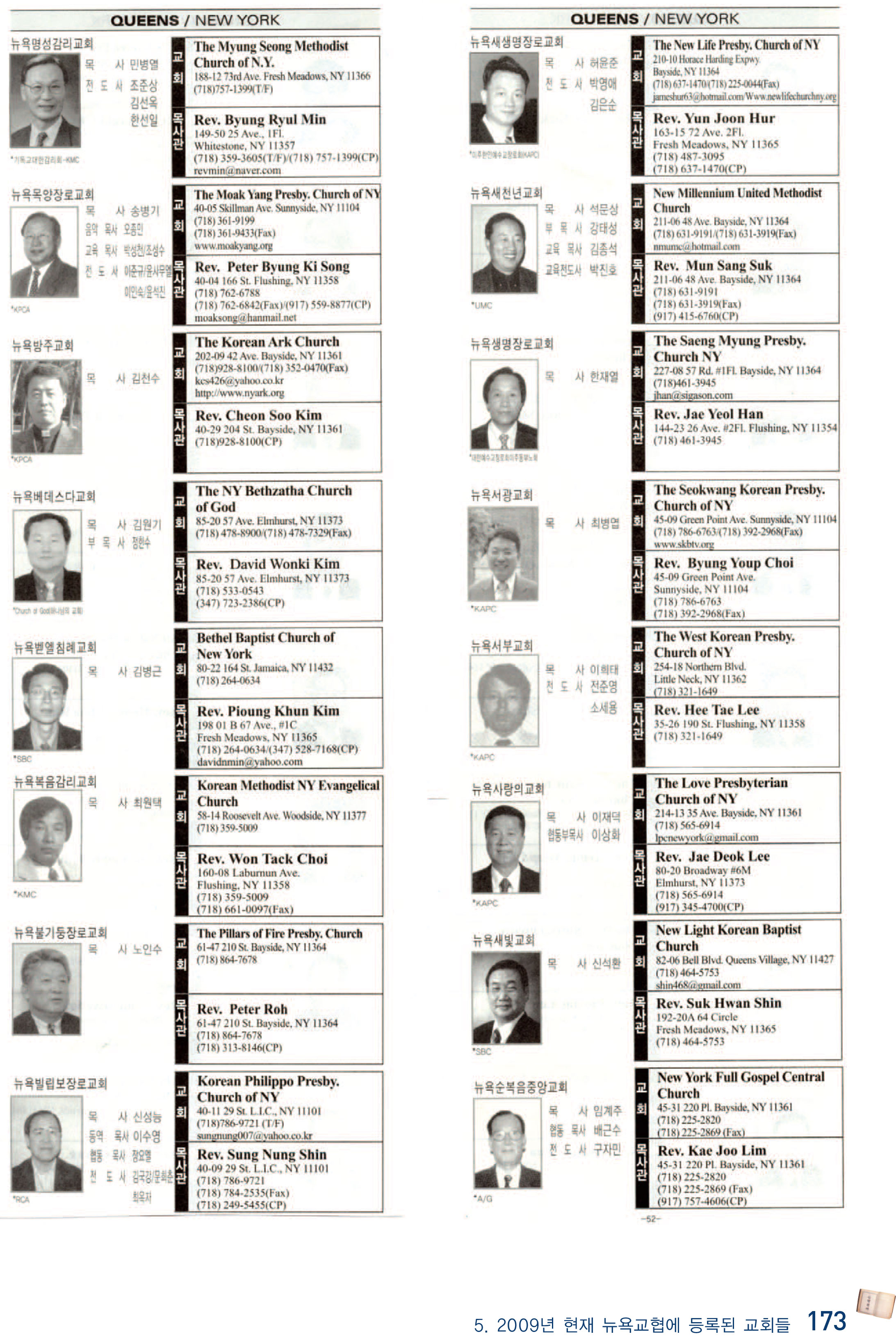 2009년 현재 뉴욕교협에 등록된 교회들