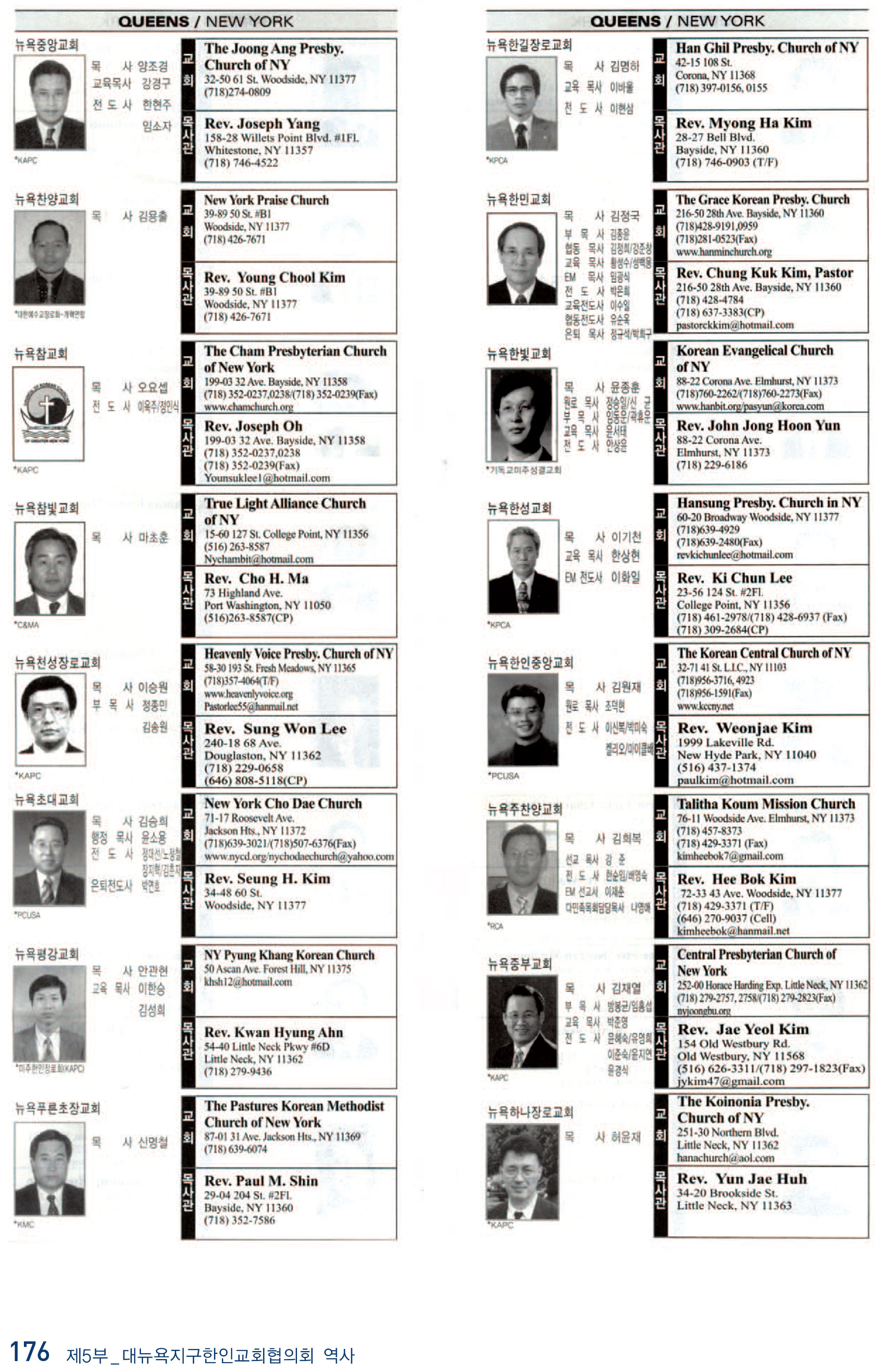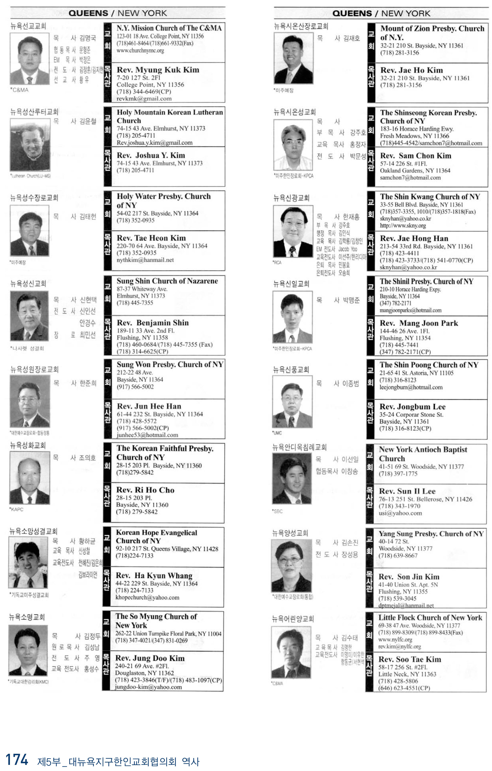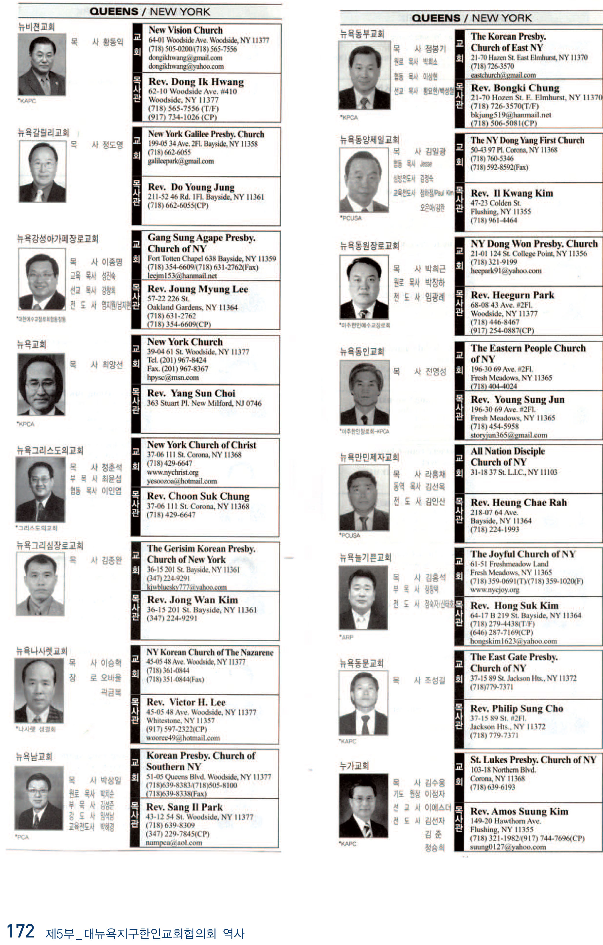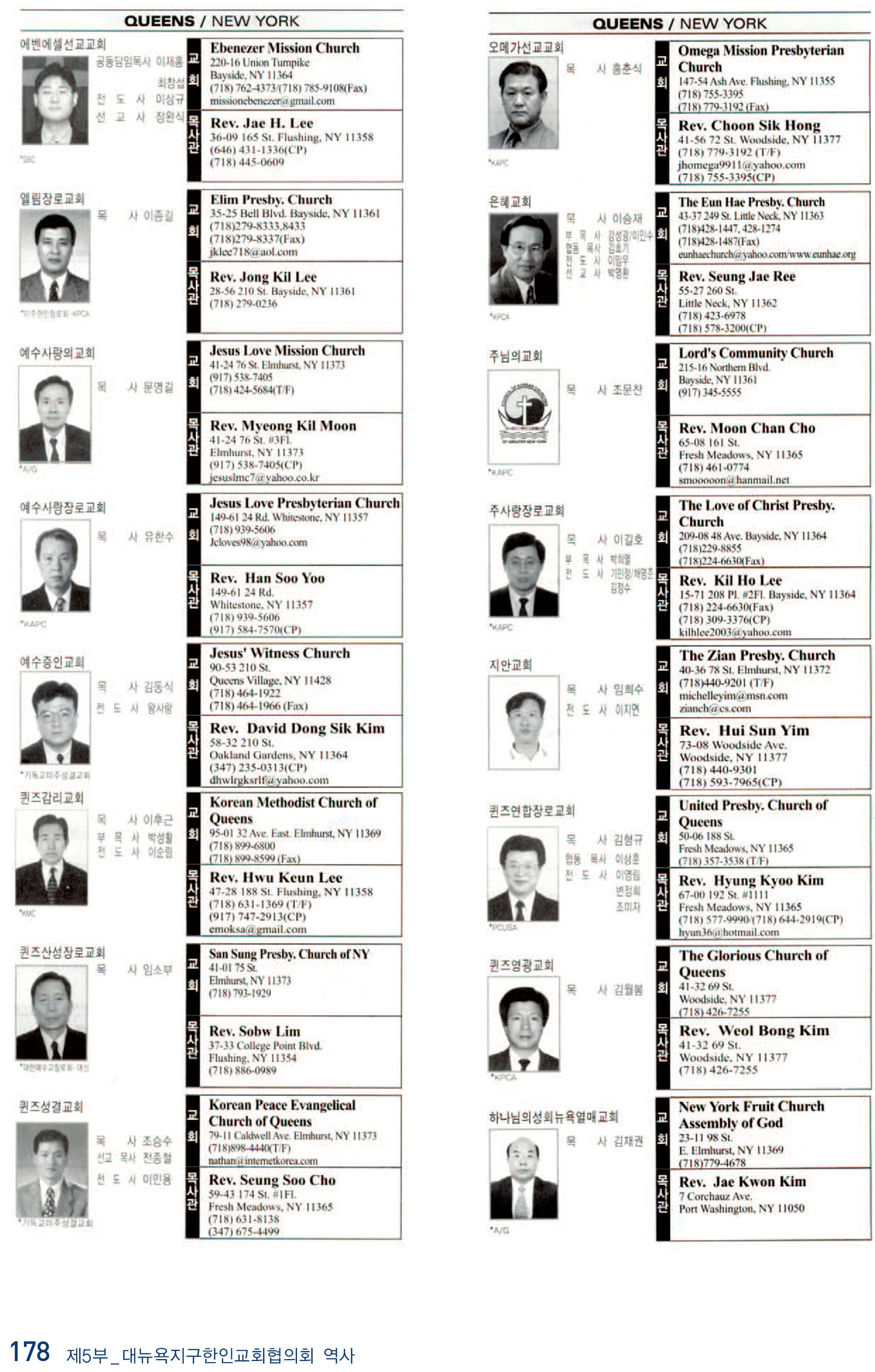 2009년 현재 뉴욕교협에 등록된 교회들