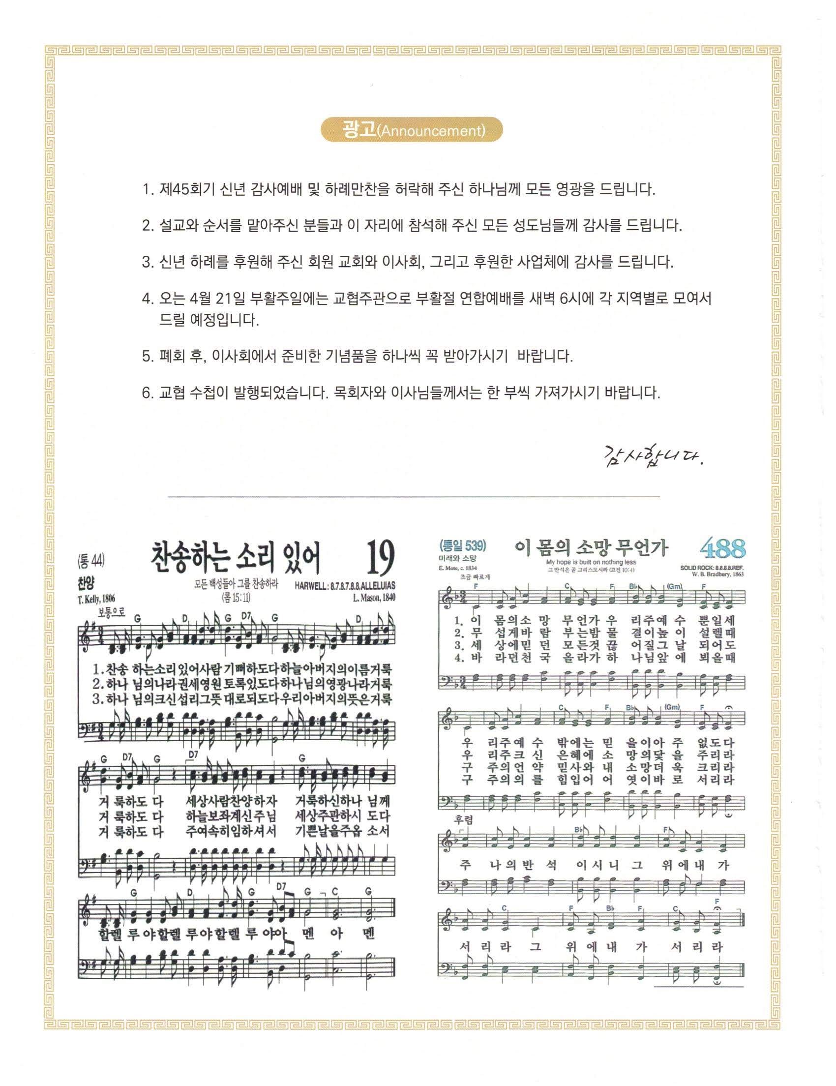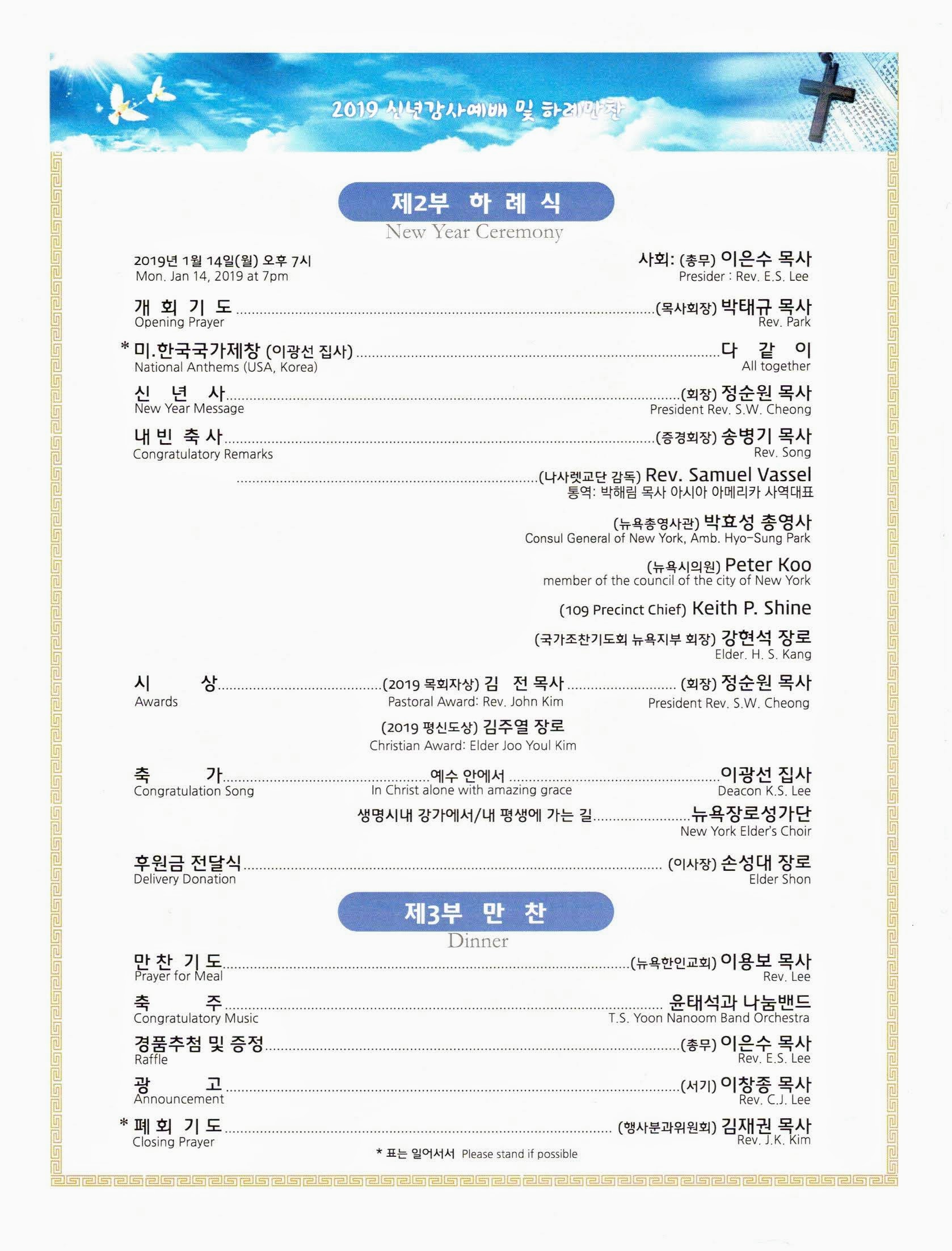 45회기 신년감사예배 및 하례만찬