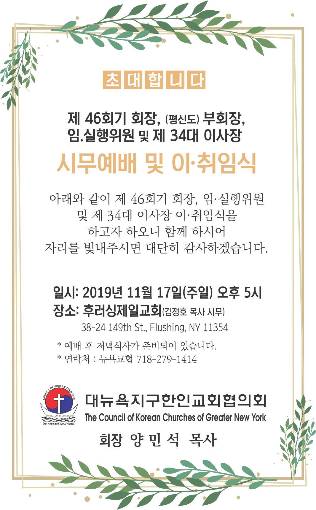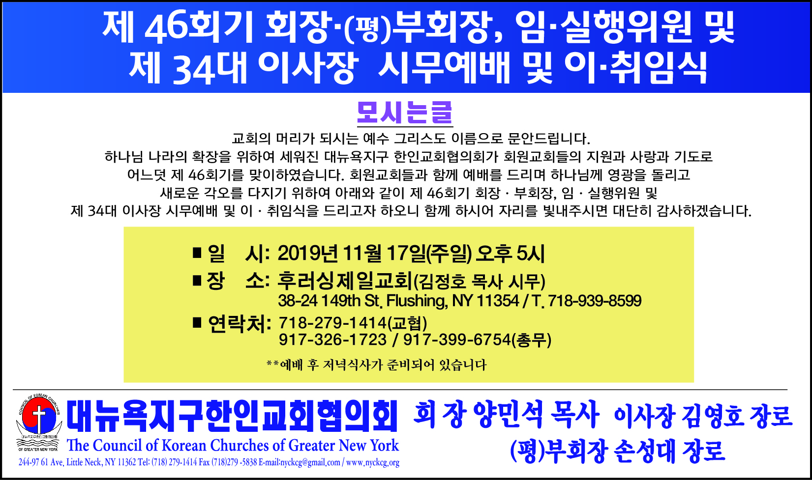연락처: 교협 사무실 (718) 279-1414